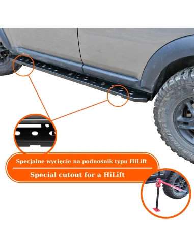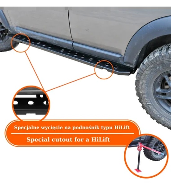 Oceľové bočné prahy ROCK SLIDERS HD2 s otvormi, určené pre Land Rover Discovery 5 od roku 2016
