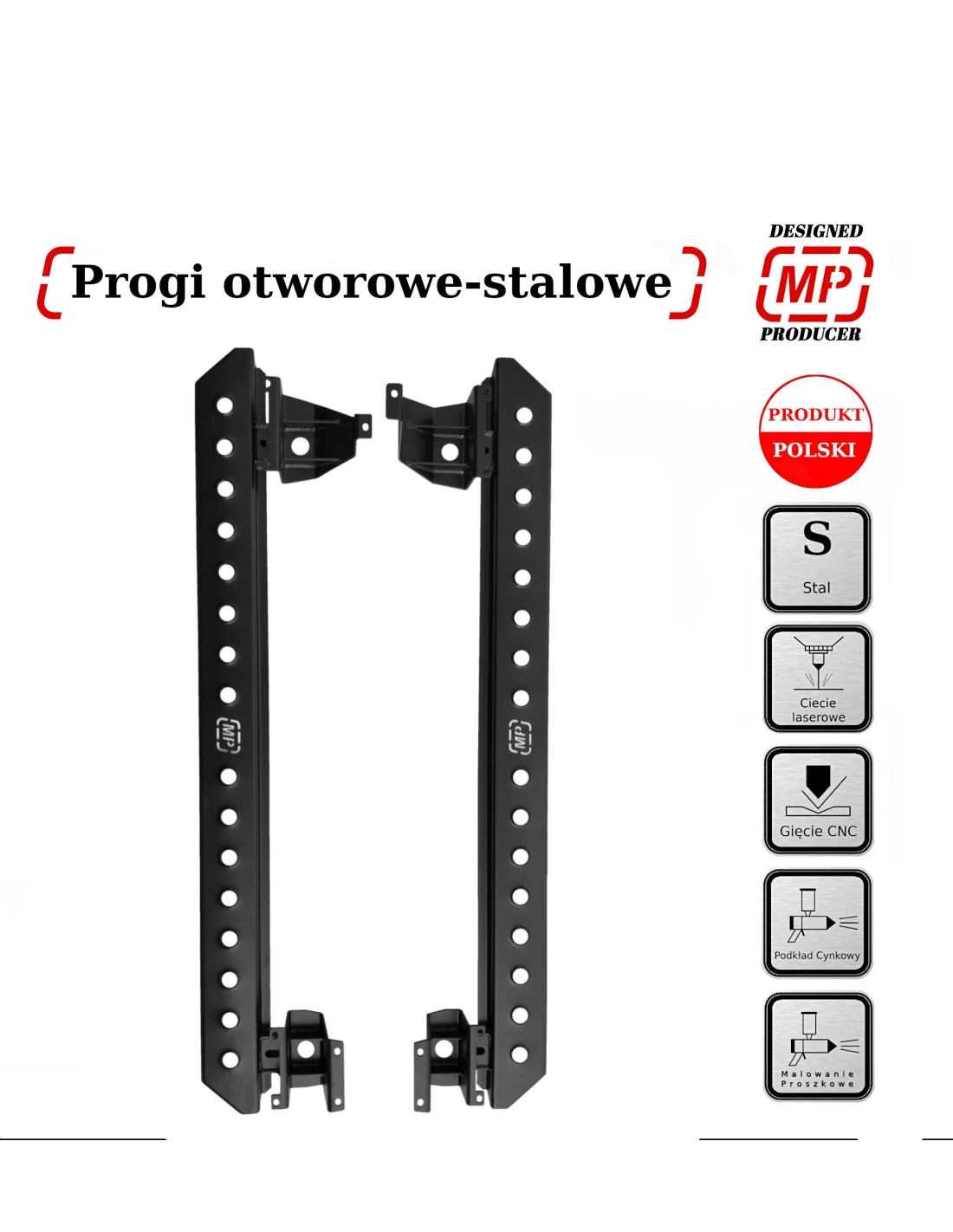 Tieto prahy sú vyrobené z 3 mm hrubej konštrukčnej ocele a sú práškovo lakované v dvoch vrstvách. Horný a dolný otvor umožňujú jednoduché čistenie blata.