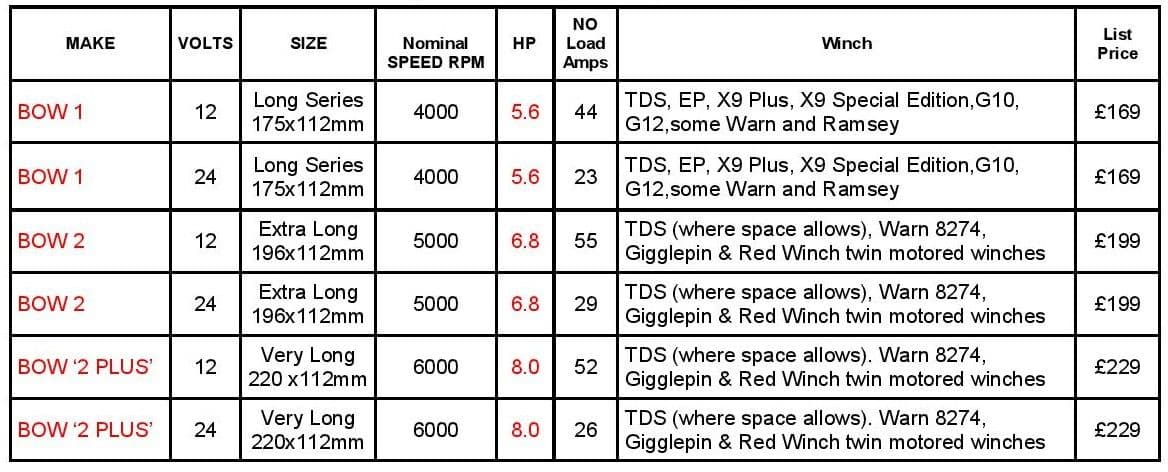 Najnovšia verzia rodiny Bow Motor, o 25 mm dlhšia ako Bow Motor 2, ale produkuje obrovský výkon 8,0 HP pri 6 000 otáčkach za minútu s nižším odberom prúdu bez záťaže. Tento motor sa stáva čoraz obľúbenejším a odporúčaným pre napájanie z prepätia. Tento motor má štandardný 20-drážkový hriadeľ kotvy, takže je priamou náhradou za väčšinu navijakov.
