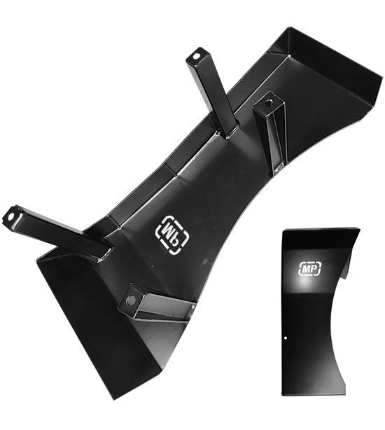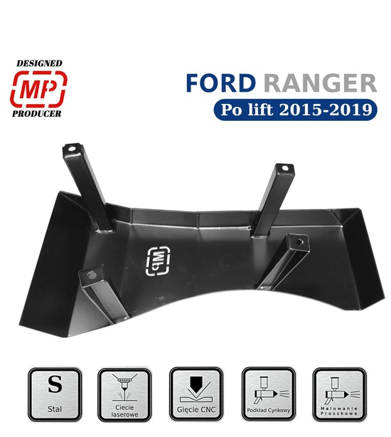 Tento kryt je určený na ochranu spodnej časti karosérie pred mechanickým poškodením. Je vyrobený z konštrukčnej ocele s hrúbkou 4 mm, čo zaisťuje vysokú odolnosť a odolnosť voči poškodeniu. Oceľ je rezaná laserom a tvarovaná CNC, aby sa zabezpečilo presné uloženie. Celá jednotka je práškovo lakovaná dvoma vrstvami: zinkovým základným náterom a čiernym práškovým náterom, ktorý zvyšuje odolnosť voči korózii a poveternostným vplyvom.
