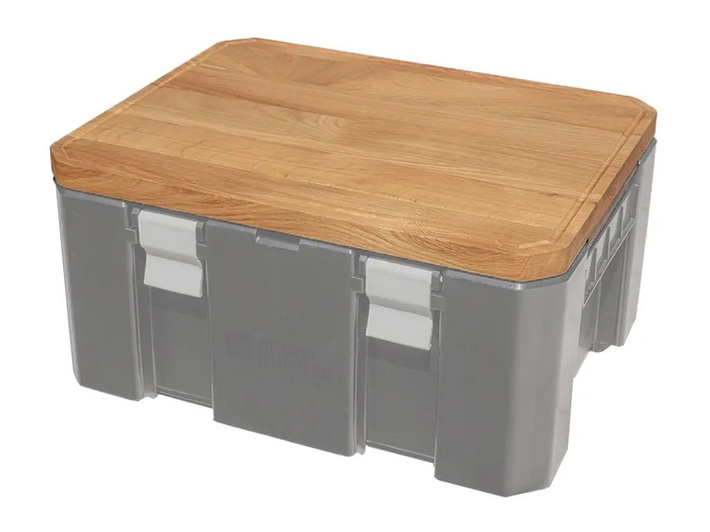 Je nevyhnutným doplnkom pre váš box Wolf Pack Pro. Vytvára dokonalý a všestranný drevený povrch na hornej strane vášho úložného boxu. Masívnu dubovú dosku stačí nasadiť na hornú časť veka boxu Wolf Pack Pro a máte univerzálnu stolnú alebo pracovnú dosku. Skvele sa hodí na prípravu jedla alebo na odkladanie občerstvenia a nápojov.