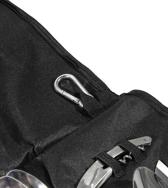Celá sada sa zmestí do rolovacieho obalu s klapkou, nastaviteľnými popruhmi a prackami a rukoväťou. Ponúka tiež slučky s karabínou, takže otvorená rolka a náčinie môžu byť zavesené pre rýchly a ľahký prístup.