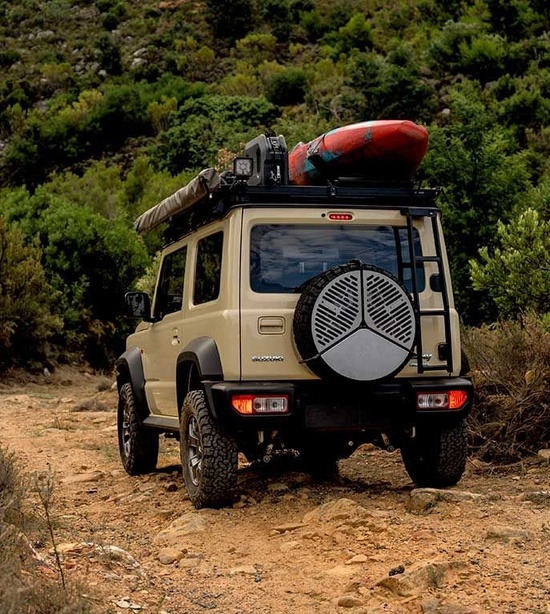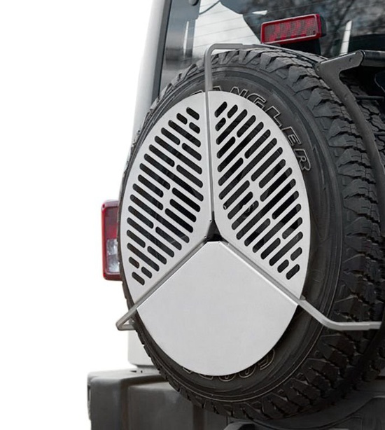 Tento dômyselný nerezový gril sa skladuje na rezervnom kolese a nezaberá prakticky žiadne miesto.