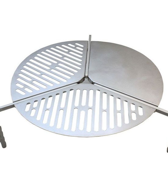 Laserom rezaná mriežka z nerezovej ocele 3CR12 na hliníkových nožičkách. Zahákne sa cez rezervné koleso (zaistite pomocou Front Runner Schodíkov rezervného kolesa, Popruhom s račňou alebo krytom kolesa - nie je súčasťou, je možné zakúpiť samostatne). Vhodný pre pneumatiky 29 ”až 35” (740 mm až 890 mm). Priemer grilovacej plochy: 600mm