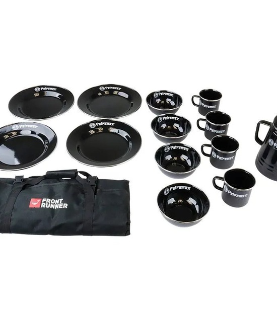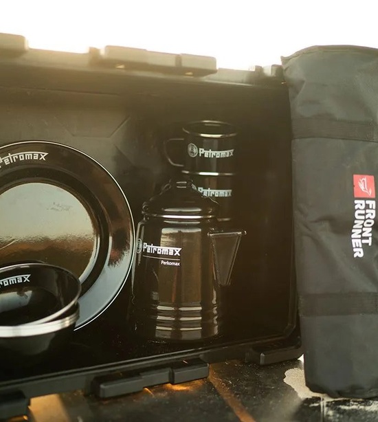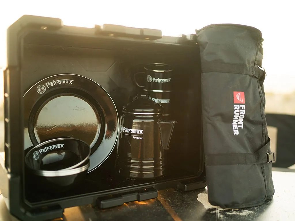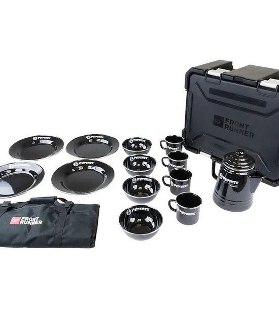 S touto univerzálnou sadou vysoko kvalitného riadu a kávovej súpravy, ktorá je pohodlne zabalená v boxe Wolf Pack Pro, sa pohodlie pri varení v prírode posunie na vyššiu úroveň. Obsahuje jedinečný perkolátor (kávovar) Perkomax a štyri hrnčeky, štyri taniere a štyri misky, všetko z čierneho smaltu odolného proti poškriabaniu. Súčasťou je aj kvalitná 24dielna sada kuchynského náčinia Front Runner.