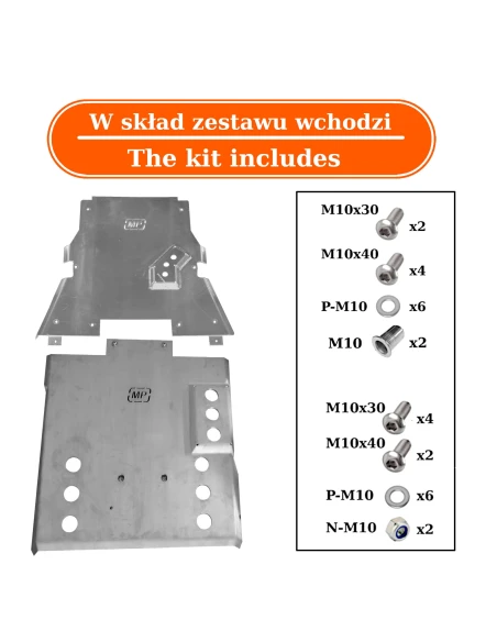 Kryty sú určené na ochranu podvozku pred mechanickým poškodením. Sú vyrobené zo 6 mm hrubej hliníkovej zliatiny, rezané laserom a tvarované CNC.