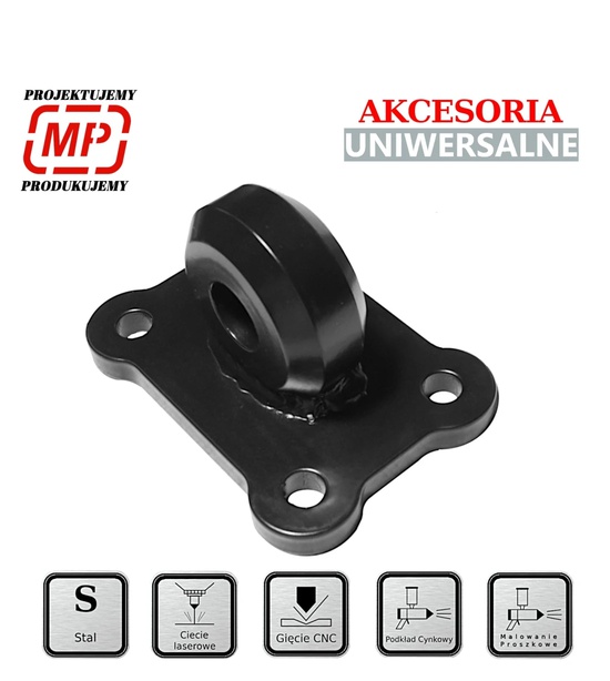 Základňa držiaka je vyrobená z 10 mm hrubého plechu, čo zaisťuje vysokú odolnosť a odolnosť voči poškodeniu. Držiak je nalakovaný polomatnou čiernou farbou pomocou novej technológie, ktorá nanáša dve vrstvy práškového laku, čím sa zvyšuje jeho odolnosť voči poveternostným podmienkam.