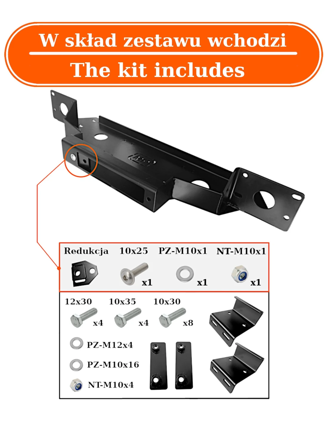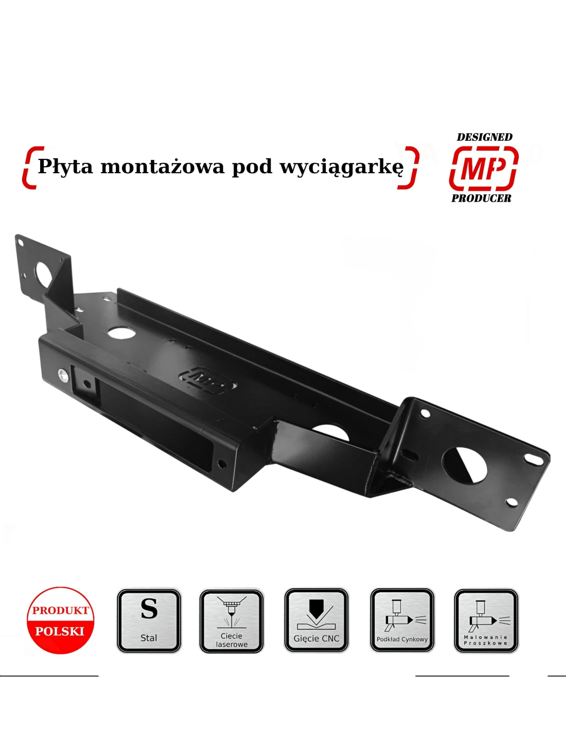 Umožňuje bezpečne namontovať štandardný navijak s ťažnou kapacitou až 13 500 libier pod nárazník vozidla z výroby. Platňa je vyrobená z odolnej konštrukčnej ocele, čo zaisťuje jej vysokú odolnosť voči extrémnym terénnym podmienkam.