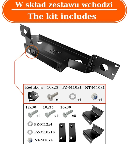 Tento produkt umožňuje bezpečnú inštaláciu štandardného navijaka s ťažnou kapacitou až 13 500 libier pod nárazník vozidla z výroby.