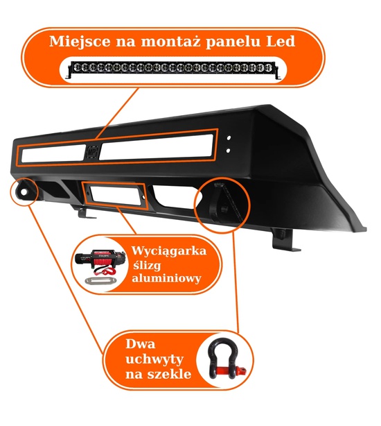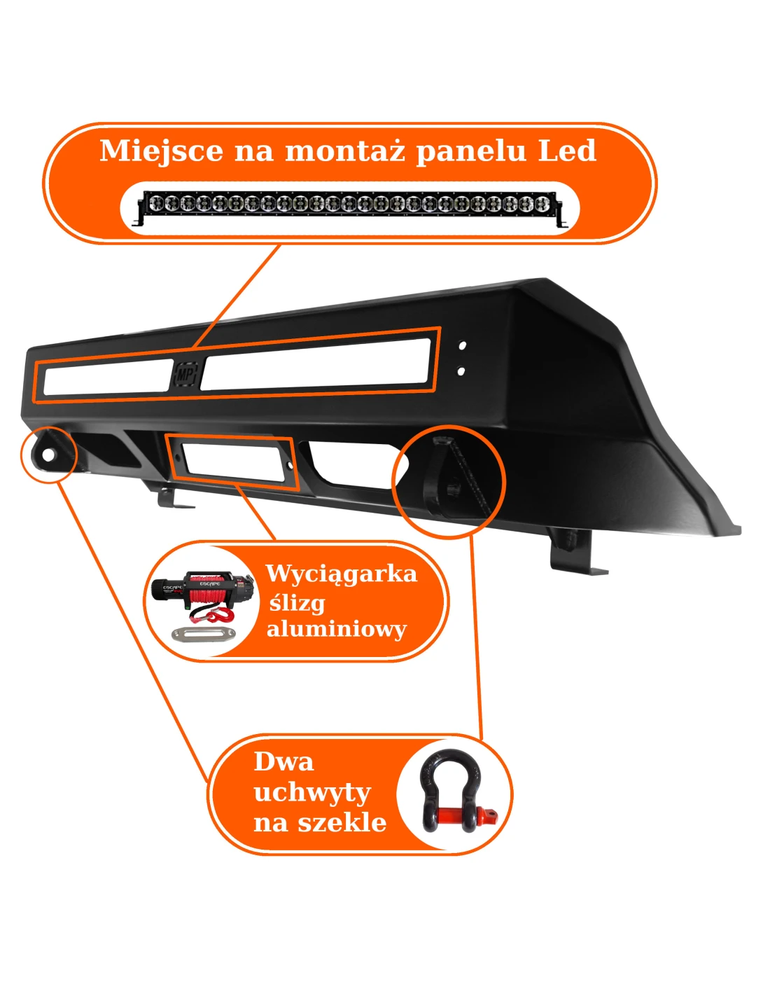 Montážna doska pre navijak HD s integrovanou prednou doskou je moderným riešením pre montážne dosky pre navijak. Zaručuje pevné uchytenie elektrického navijaka a účinnú ochranu prednej časti, pripomínajúcu oceľový nárazník. Obsahuje vstavané, ľahko prístupné ťažné háky a priestor pre montáž dodatočného LED osvetlenia.