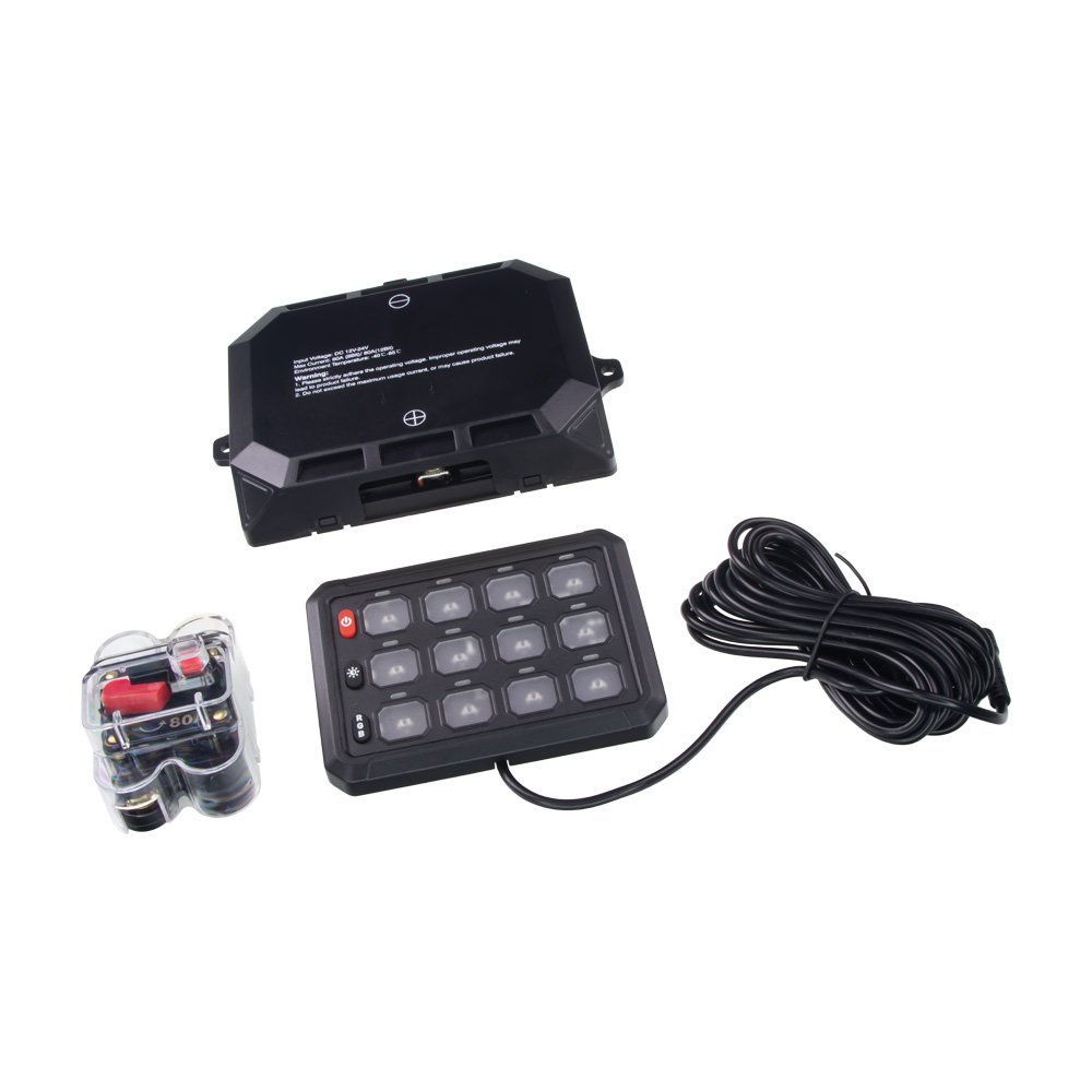 Ľahko nainštalujete do 12 V a 24 V vozidiel. Je vhodný pre rôzne typy automobilov, terénne vozidlá, pickupy, nákladné vozidlá atď. Rôzne spínače na ovládanie všeobecného elektrického vybavenia vo vozidle: svetlomety a iné zariadenia. Ovládací panel je možné inštalovať na prístrojovú dosku, stredovú konzolu, sedadlo, strop, A-stĺpik vo vozidle atď.