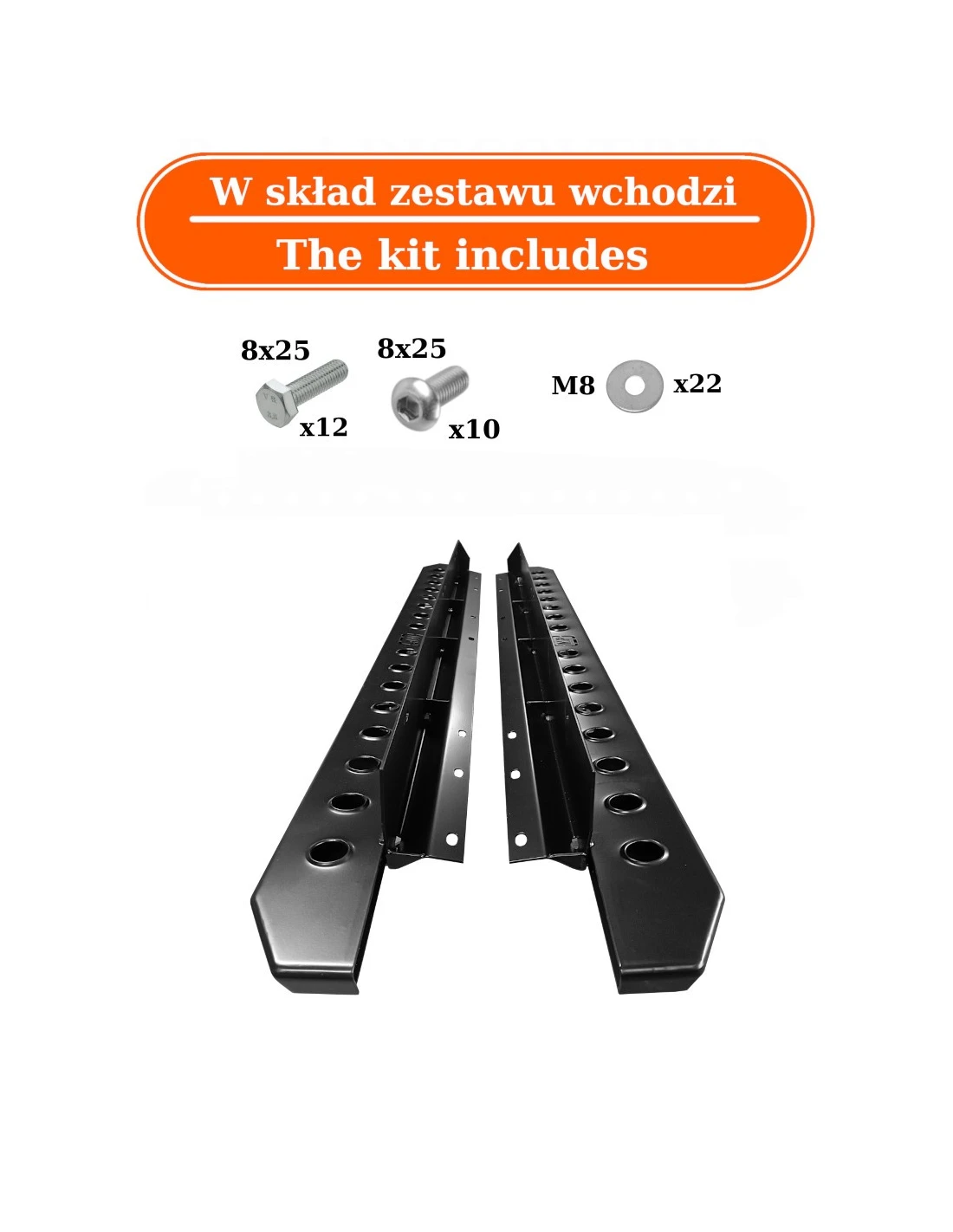 Sada obsahuje dva bočné prahy pre každú stranu vozidla spolu s montážnymi skrutkami, čo zaisťuje plnú kompatibilitu a inštaláciu pripravenú na okamžitú inštaláciu.