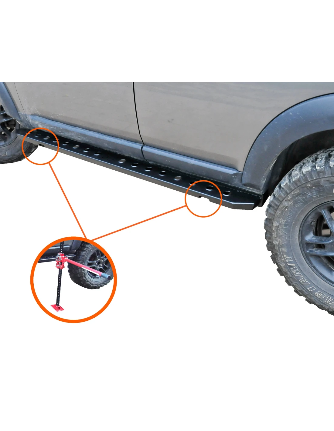 Tieto bočné prahy sú vyrobené z pevnej 4 mm hrubej konštrukčnej ocele. Sú práškovo lakované dvoma vrstvami: zinkovým základným náterom a práškovým náterom.