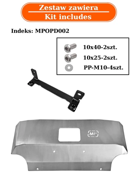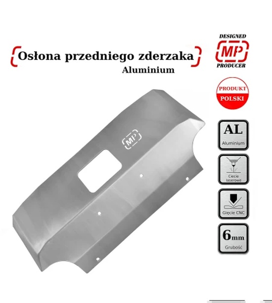 Kryt nárazníka je navrhnutý tak, aby chránil predný nárazník pred mechanickým poškodením. Je vyrobený zo 6 mm hrubej, laserom rezanej hliníkovej zliatiny, čo zaisťuje vysokú odolnosť a odolnosť voči extrémnym terénnym podmienkam.
