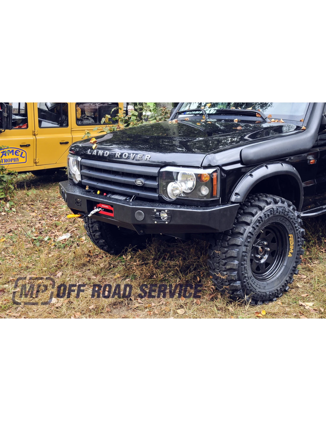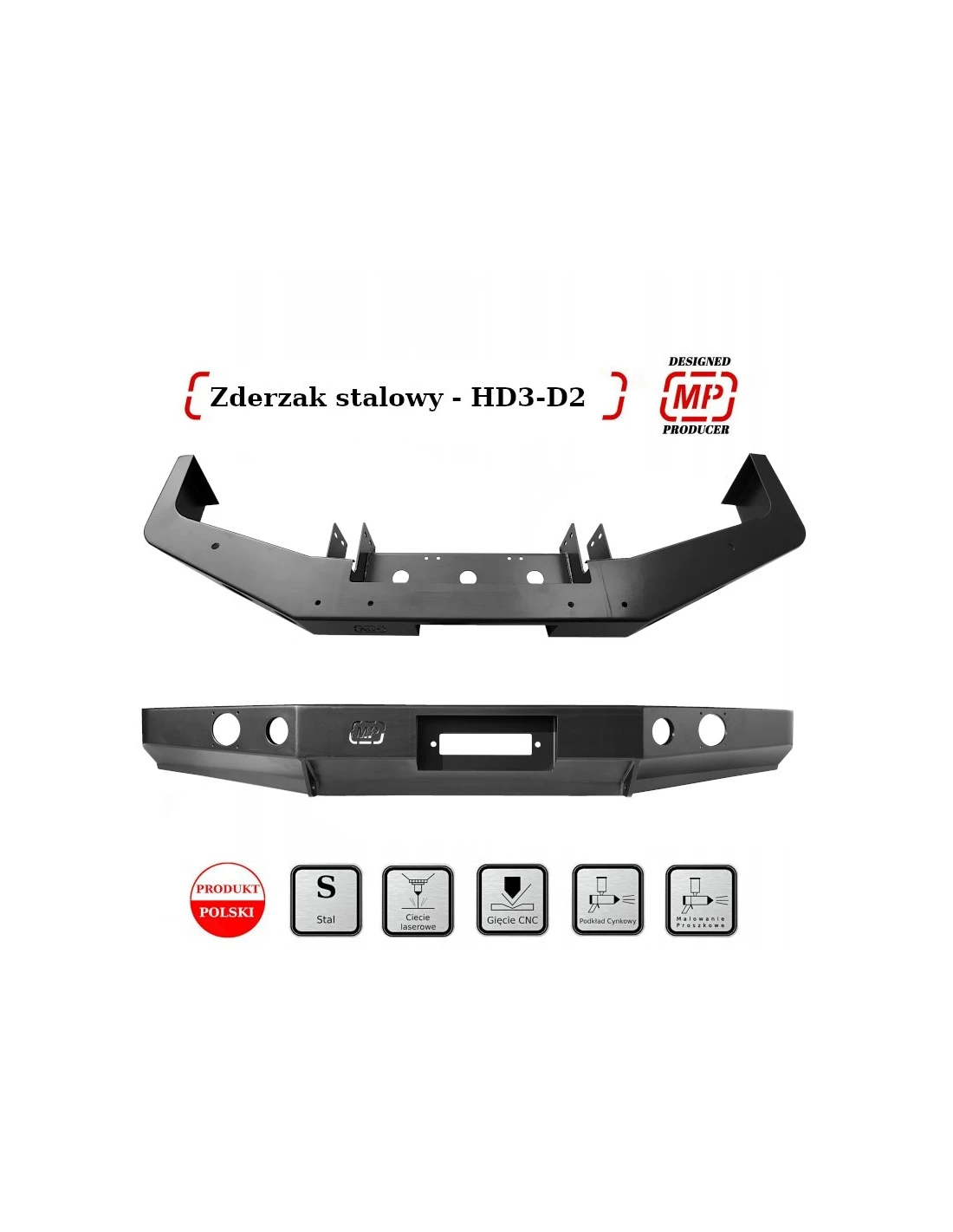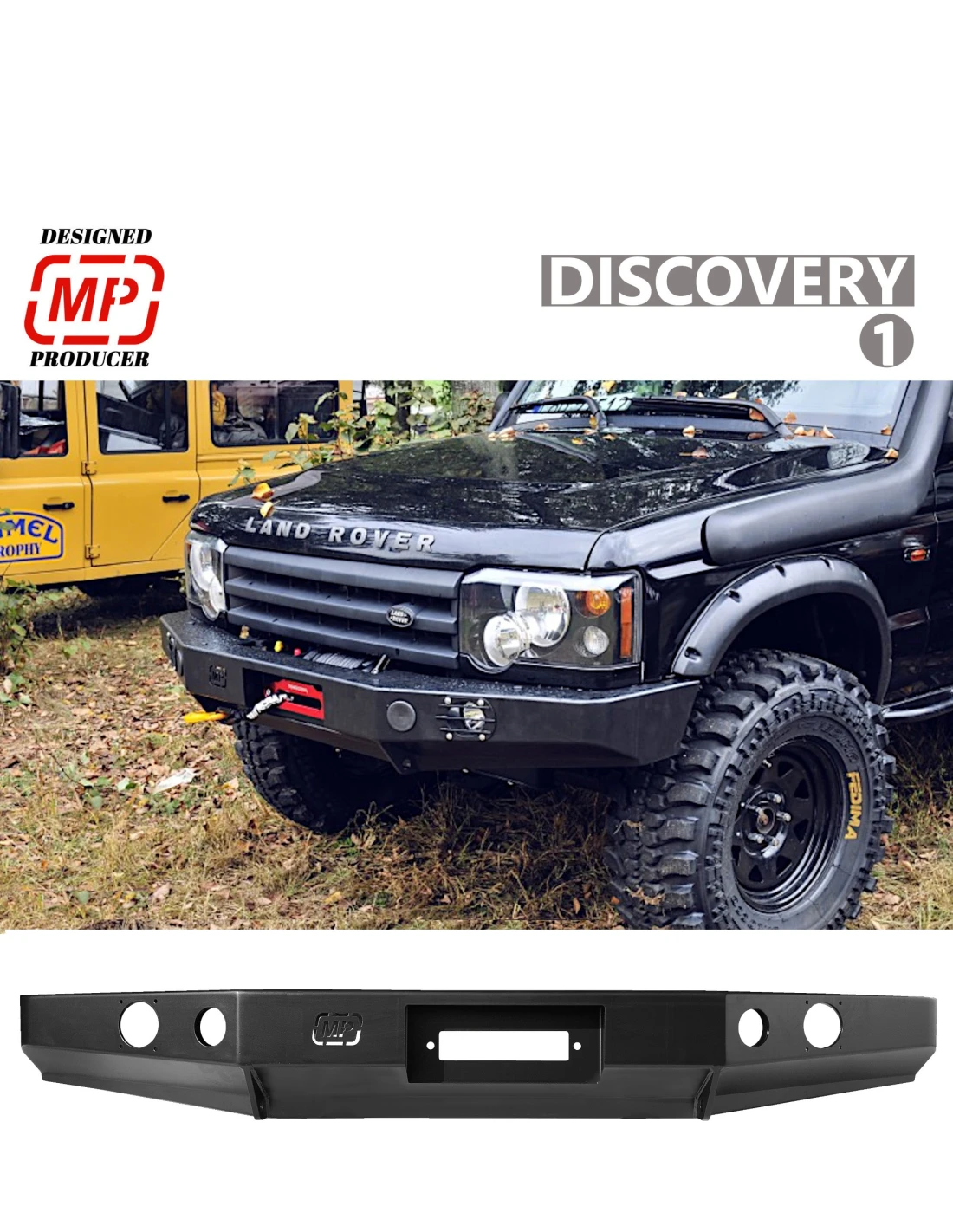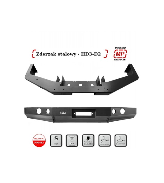 Predný nárazník HD3 na Discovery I bez orámovania, pasuje do 200tdi/300tdi/v8. Nárazník je vyrobený z 4 a 5mm ocele. Farba čierna polomat v dvoch vrstvách. Je vybavený otvormi pre hmlovky, ktoré sú zapustené v nárazníku a tak nedochádza k ich poškodeniu. Na nárazniku sú aj úchyty pre high-lift a sú na ňom aj úchyty na prídavné svetlá. Nárazník je vybavený montážou platńou na naviják do 13 000 lbs. Nárazník je kompatibilný s krytmi riadenia MP. Dodávame komplet aj s montážnym príslušenstvom.