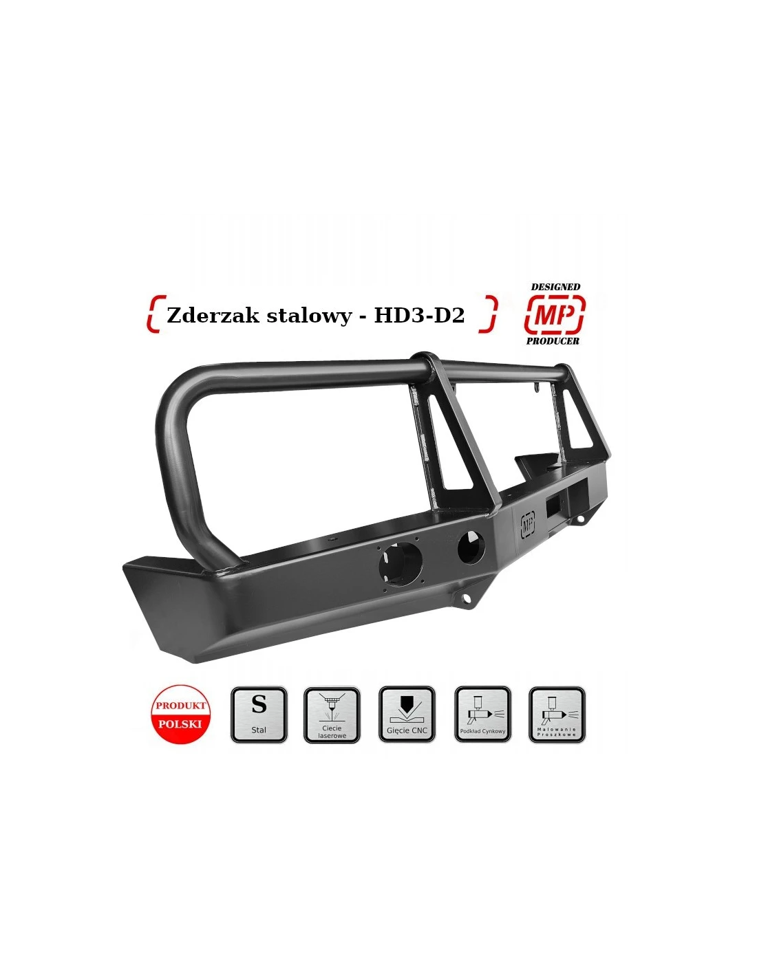 Predný nárazník HD3 na Discovery II s orámovaním, pasuje do 200tdi/300tdi/v8. Nárazník je vyrobený z 4 a 5mm ocele, orámovanie nie je zvárané ale ohýbané v celku. Farba čierna polomat v dvoch vrstvách. Je vybavený otvormi pre hmlovky, ktoré sú zapustené v nárazníku a tak nedochádza k ich poškodeniu. Na nárazniku sú aj úchyty pre high-lift a sú na ňom aj úchyty na prídavné svetlá. Nárazník je vybavený montážou platńou na naviják do 13 000 lbs. Nárazník je kompatibilný s krytmi riadenia MP. Dodávame komplet aj s montážnym príslušenstvom.