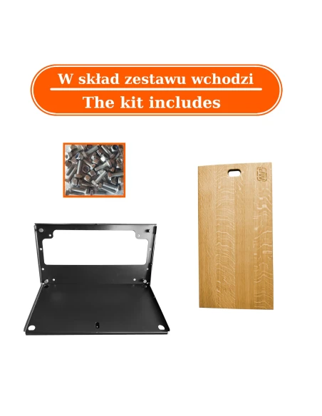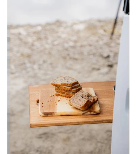 Stôl sa skladá zo skladacej oceľovej dosky a výsuvnej drevenej pracovnej dosky, vďaka čomu je ideálny na dlhé aj krátke výlety mimo mesta.