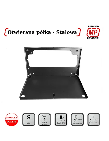 Vyrobený z 2 mm hrubej konštrukčnej ocele, práškovo lakovaný v polomatnej čiernej farbe.