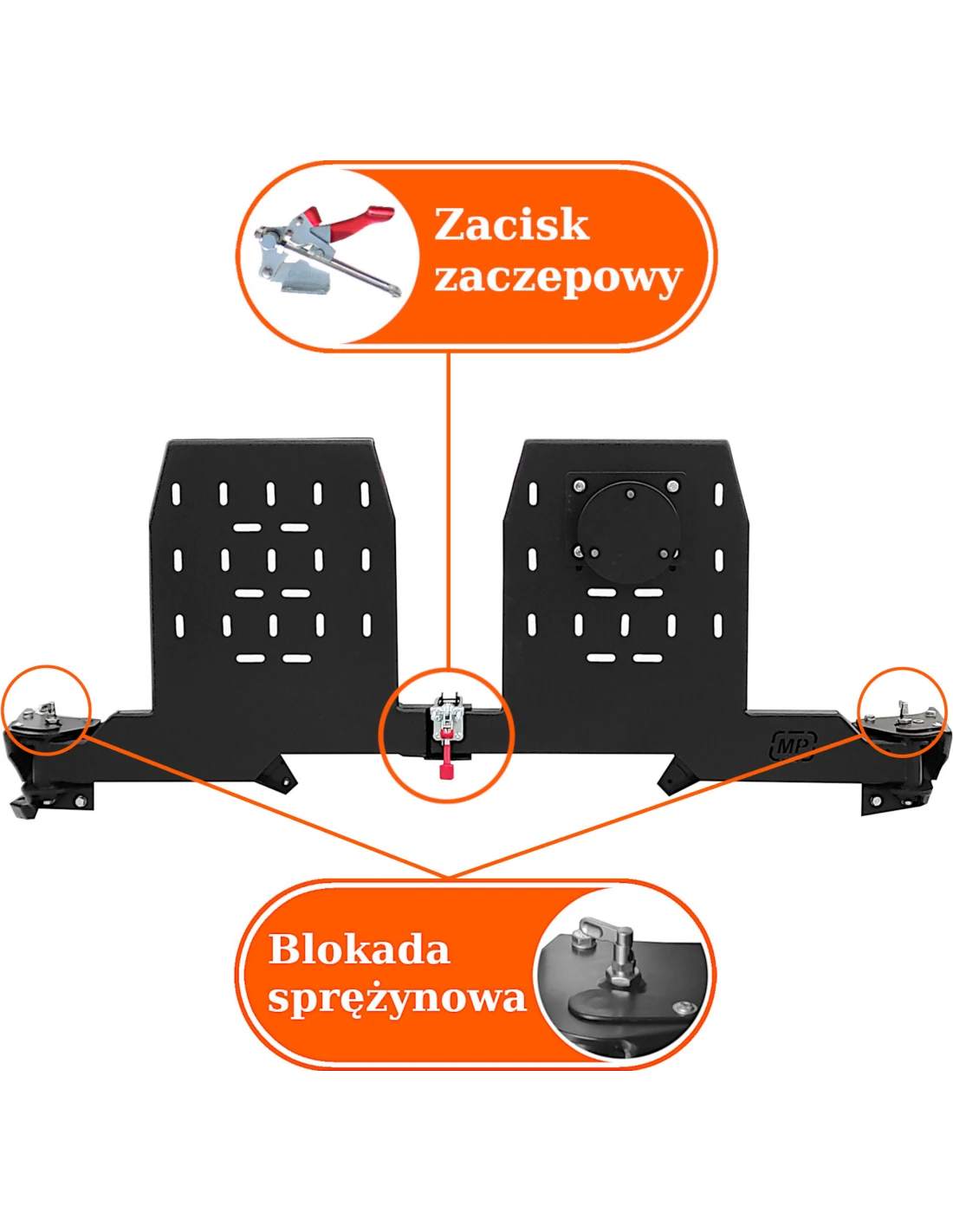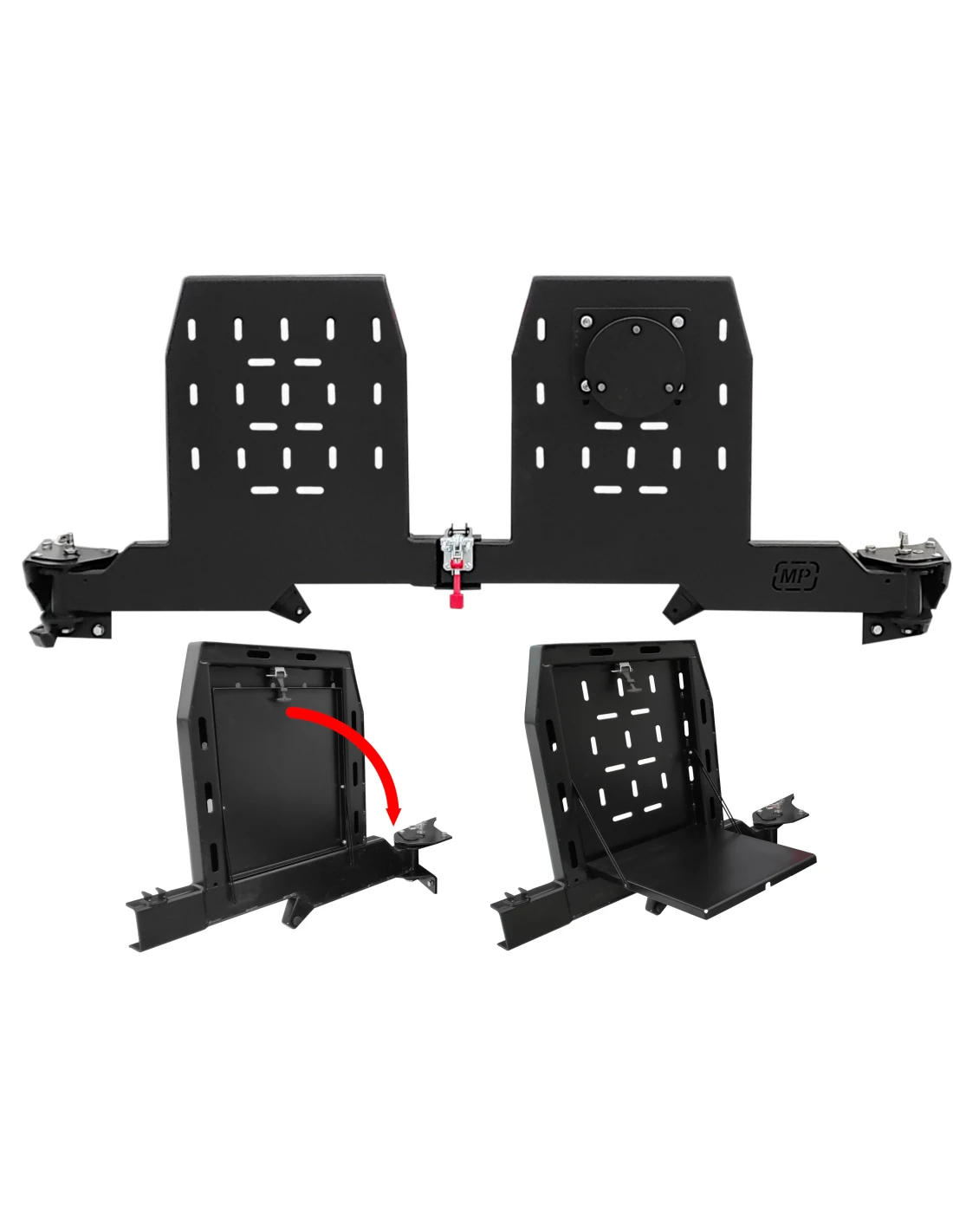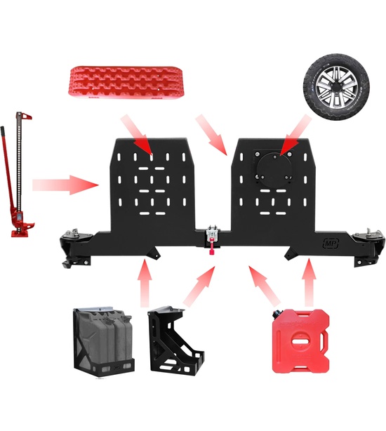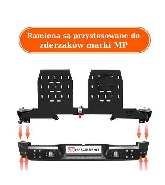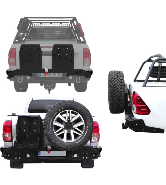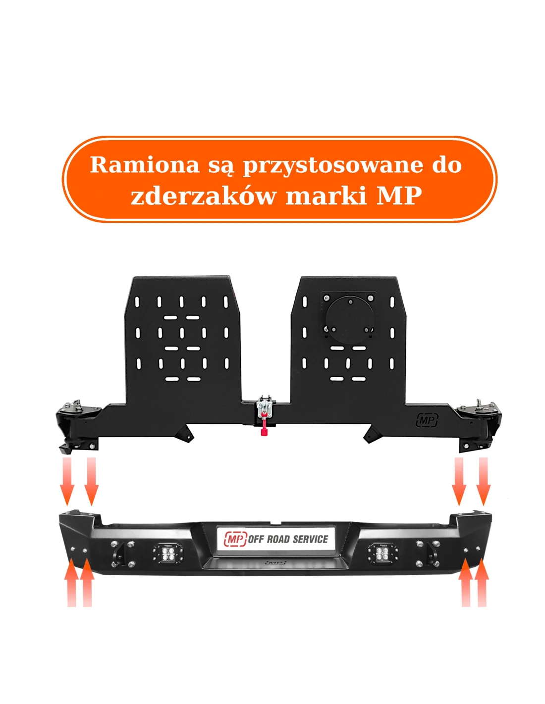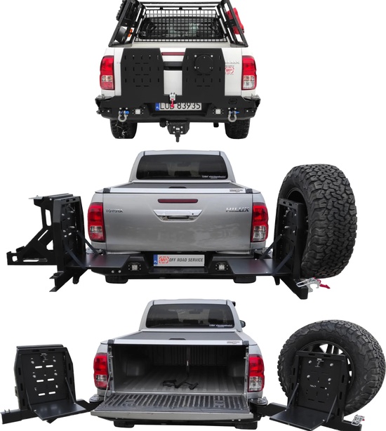 Sada sa skladá z dvoch ramien, ktoré sa otvárajú do strán vozidla a sú vhodné na montáž rezervnej pneumatiky a príslušenstva, ako sú Hilift, palivové nádrže, rampy atď.