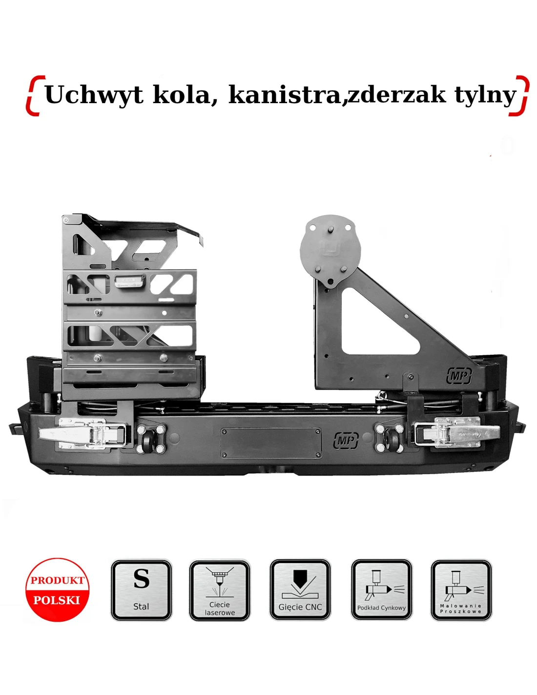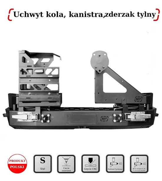 Konštrukcia nárazníka: Prvky nárazníka sú vyrobené z vysokopevnostného konštrukčného plechu s hrúbkou 4 a 5 mm, rezaného laserom a ohýbaného na digitálnych lisoch. Nárazník je práškovo lakovaný dvoma vrstvami: zinkový základný náter a polomatná čierna.