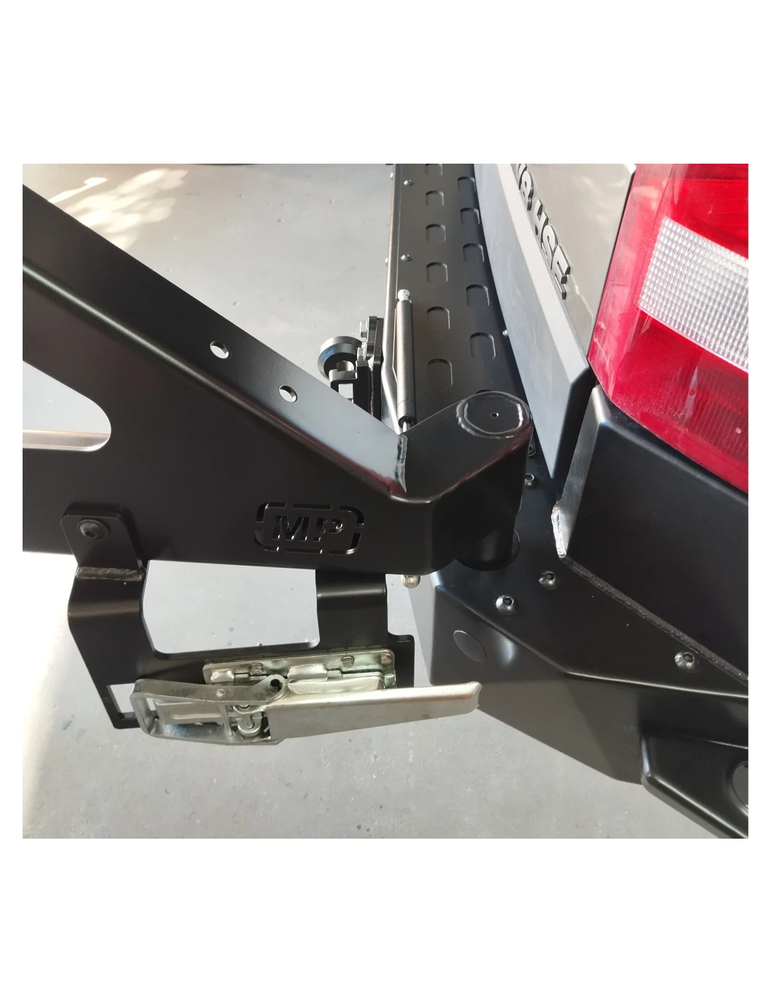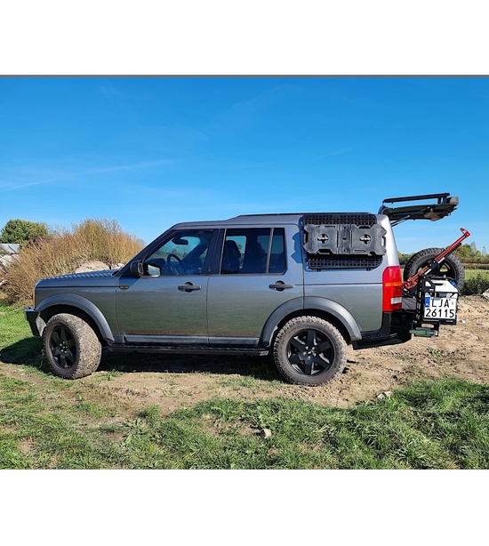 Montáž na rám vozidla Land Rover v štyroch bodoch pomocou montážnych otvorov z výroby, ktoré sú súčasťou sady. Vybavený montážnymi otvormi pre držiaky závesov MP. Okrem toho má odnímateľné bočné schodíky.