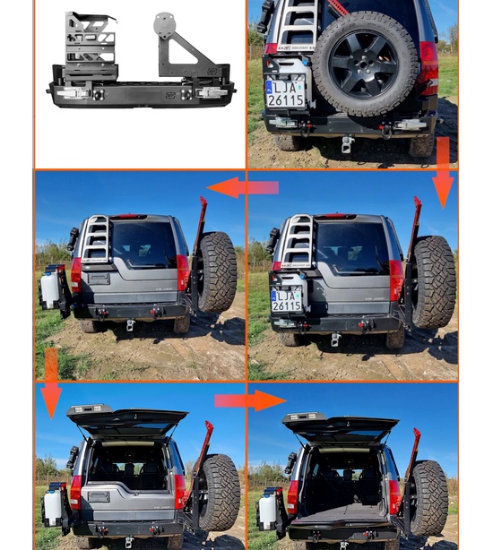 SADA zadný nárazník HD2 s rezervným kolesom a držiakmi na kanister pre Discovery III