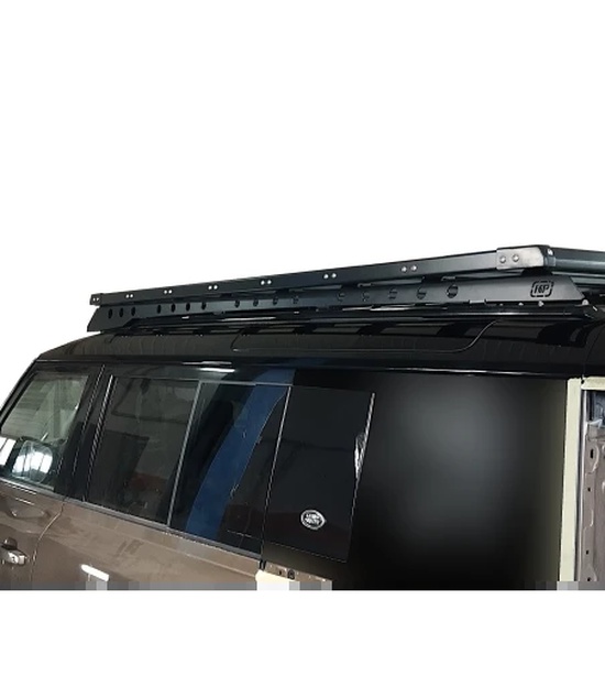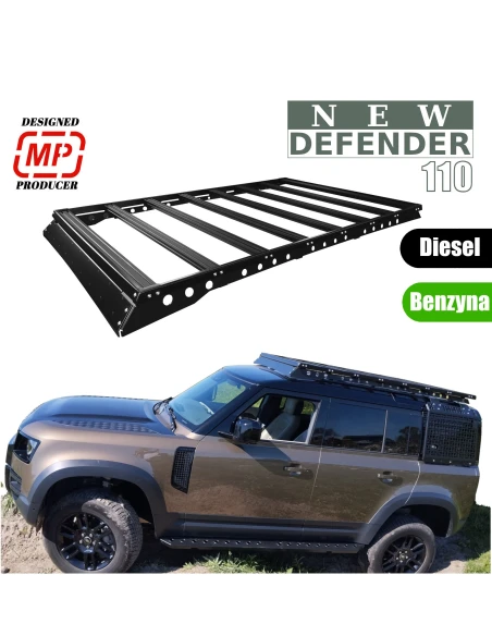 Strešný nosič z hliníka HD pre Land Rover Defender 110 L663 od roku 2020. Ľahký, odolný, inštalácia bez vŕtania, ideálny pre príslušenstvo do terénu a 4x4. Nosič sa montuje na strešné lyžiny z výroby.