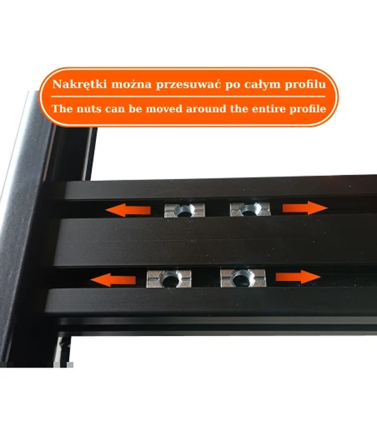 Priečky nosiča sú vyrobené z čierneho oxidovaného hliníkového profilu s rozmermi 30 x 60 mm.