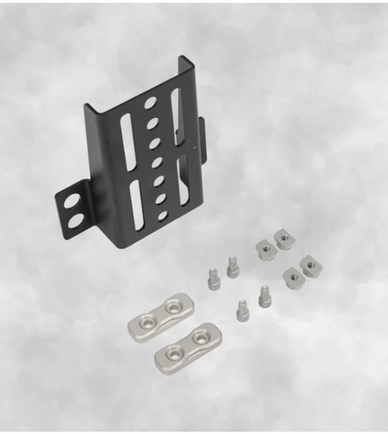Súčasťou balenia je kompletná montážna sada (koľajnicové matice a nerezové skrutky) pre ľahké upevnenie držiaka k hliníkovému profilu stanu.